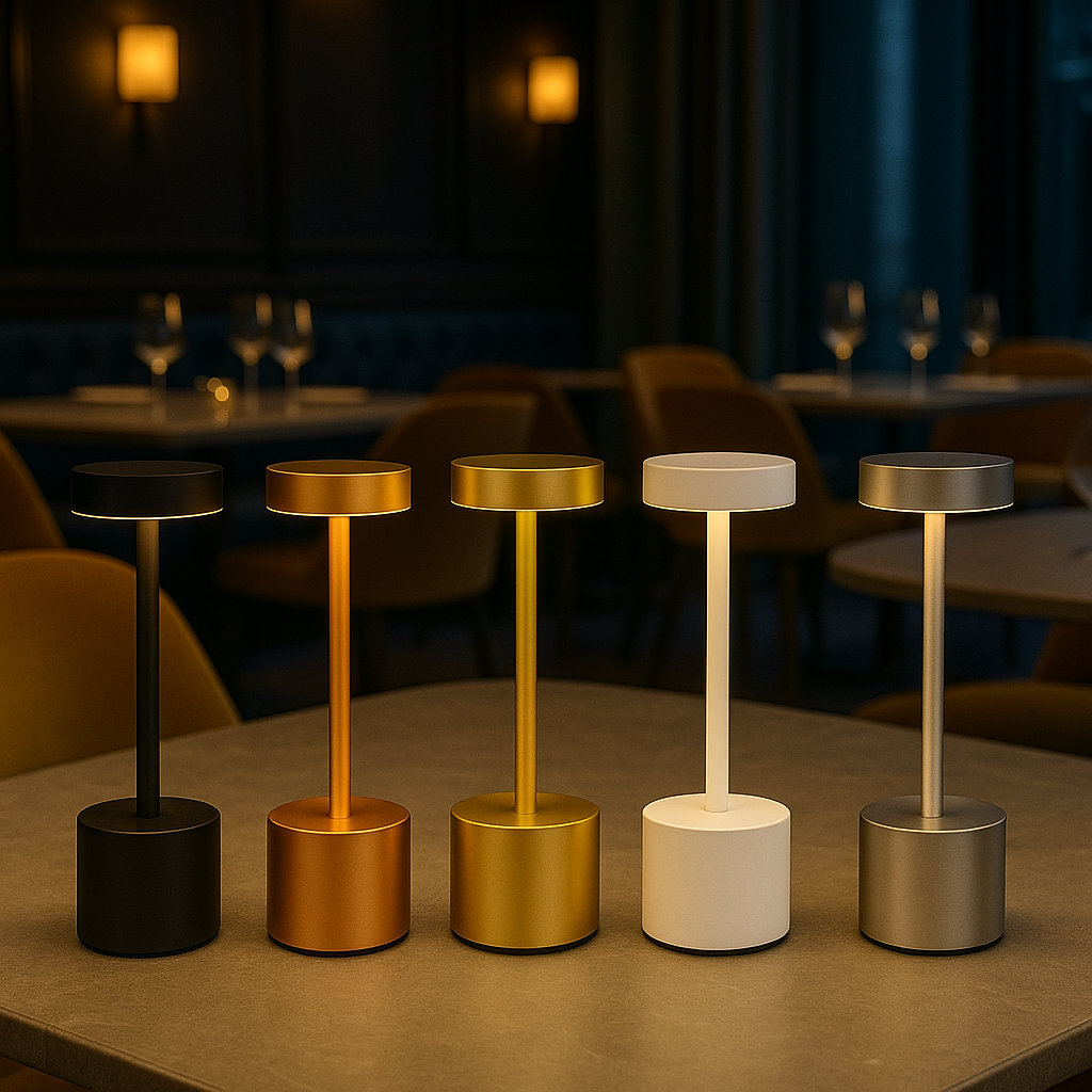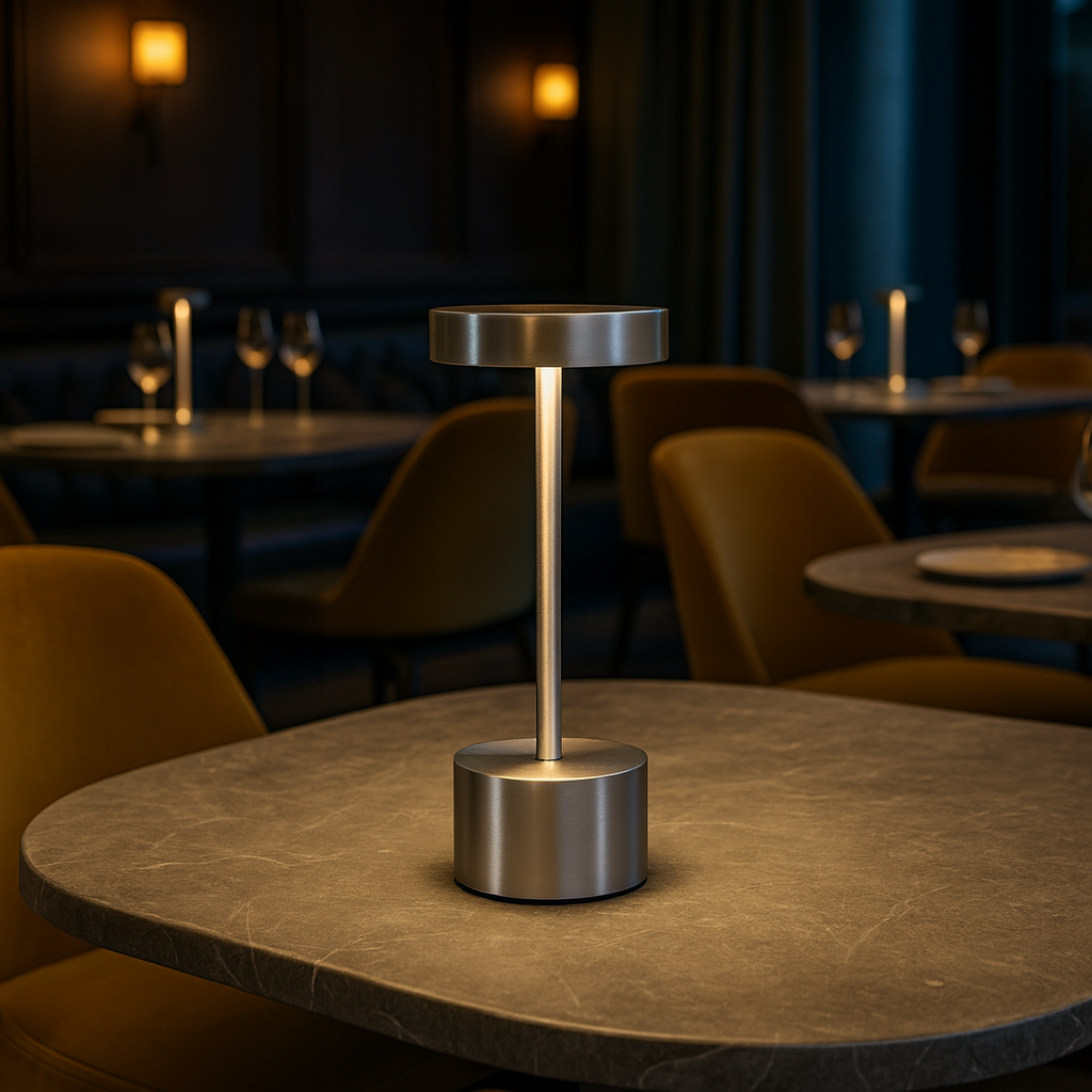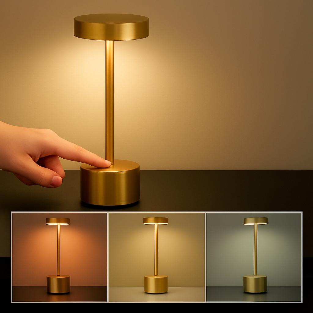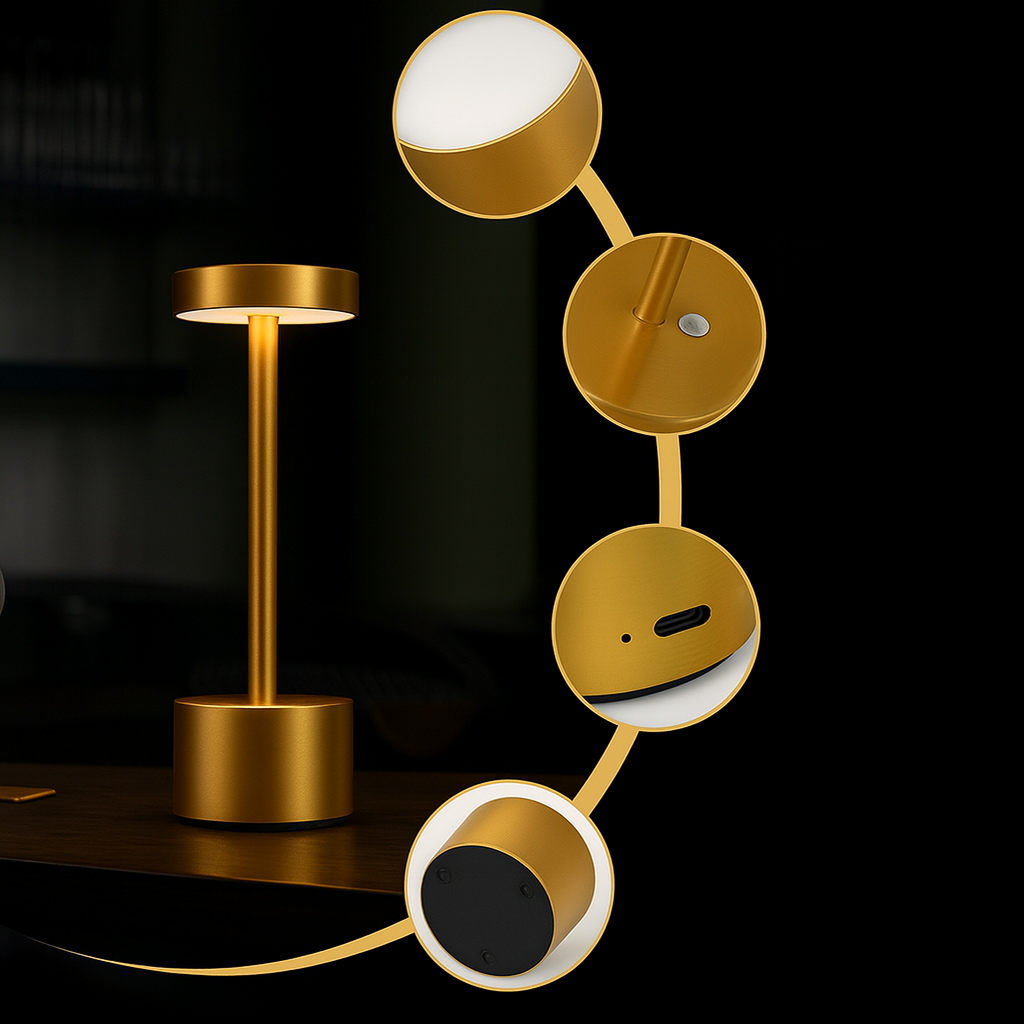 Lampada LED elegante con controllo touch e ricarica USB-C.