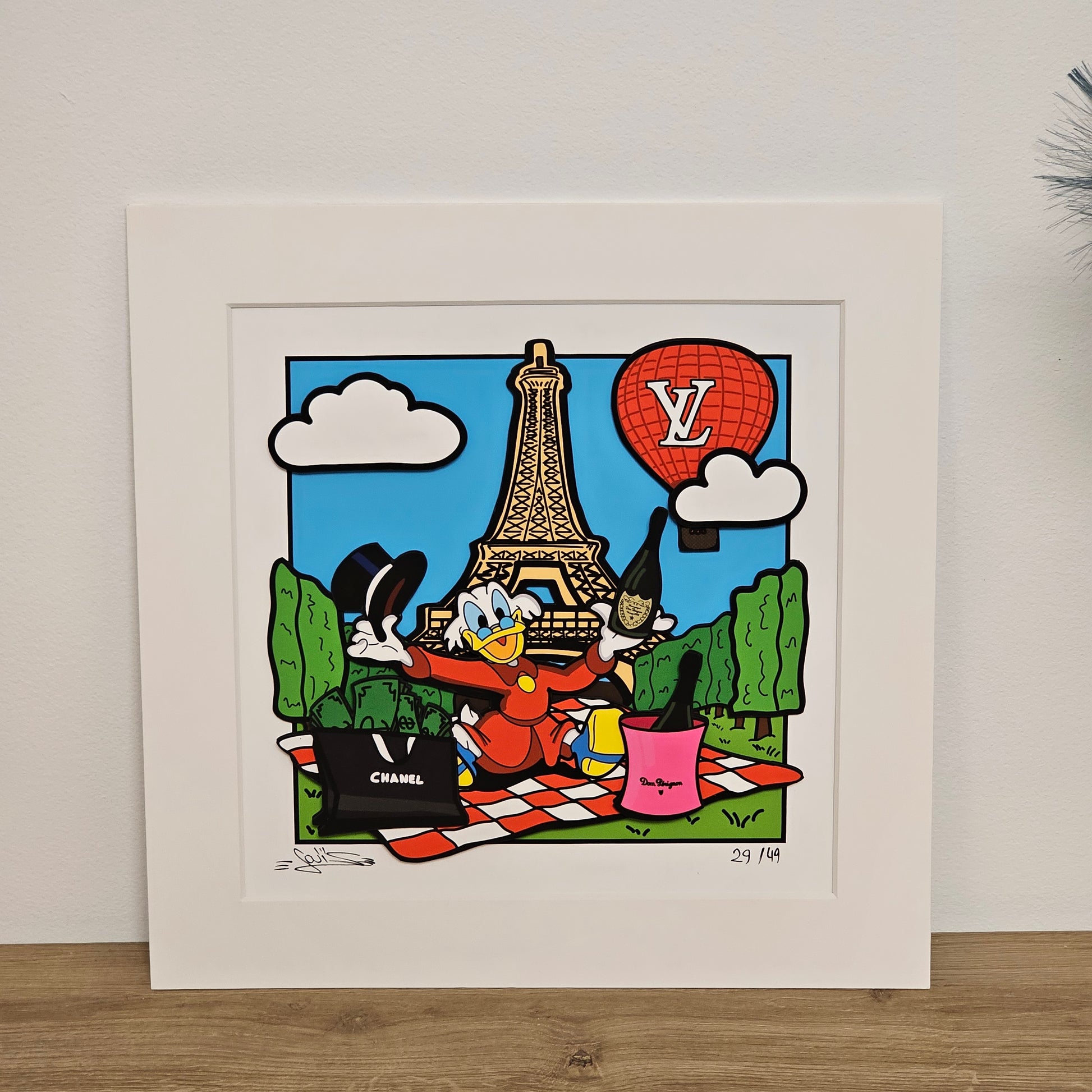 In quest'opera d'arte, Louis Krüger utilizza la sua tecnologia 3D. Combina più strati di carta per ottenere un effetto 3D unico. Stampata su carta di alta qualità da 270 g/m² senza acidi con un sistema di inchiostro pigmentato a 12 colori che garantisce una lunga durata di stampa, fino a 200 anni. Firmata e numerata.